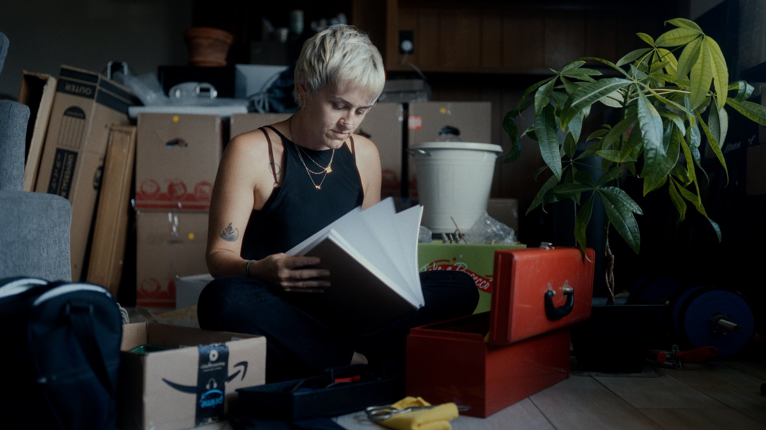 Through a series of short vignettes, we sought to focus on the three core storytelling elements: Kelly’s past (the poems), the present (the art show) and the future (the move and beyond). The film was shot in chronological order, as the events depicted occured in real time.